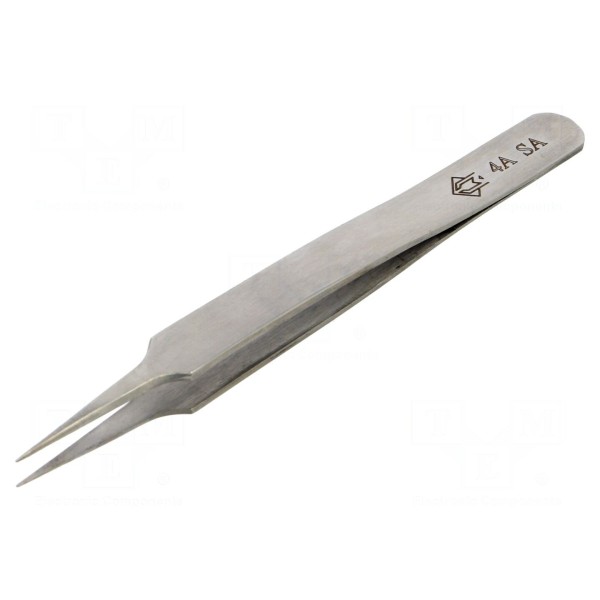 Pęseta o długości 110 mm została zaprojektowana w formie prostej, co ułatwia manipulację elementami w ograniczonych przestrzeniach. Narzędzie wyposażone jest w zwężone ostrza, które posiadają ostro zakończone końcówki.