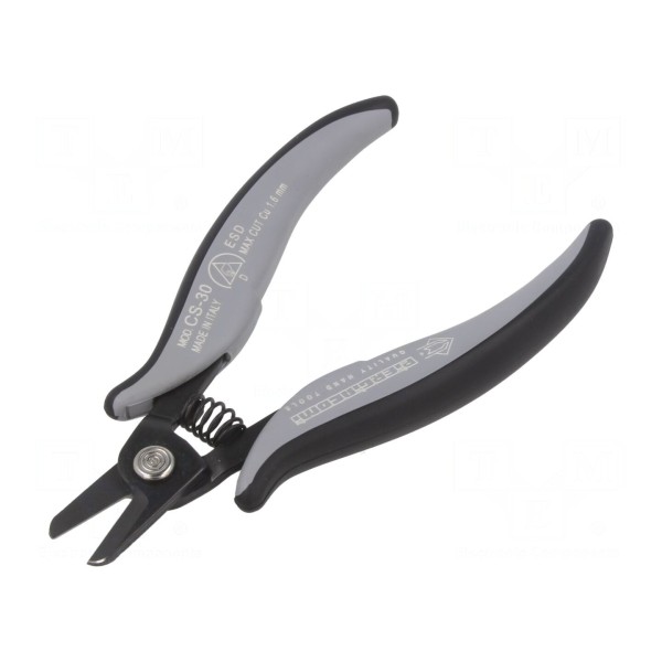 Miniaturowe szczypce do cięcia PIERGIACOMI CS30D zostały zaprojektowane do precyzyjnych prac w elektronice. Narzędzie posiada konstrukcję typu ESD, co pozwala na bezpieczne wykorzystanie w strefach chronionych przed wyładowaniami elektrostatycznymi.