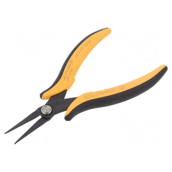 Całkowita długość szczypiec wynosi 155mm. Konstrukcja narzędzia oraz płaski profil szczęk zapewniają kontrolę podczas wykonywania prac manualnych w różnych zastosowaniach technicznych.