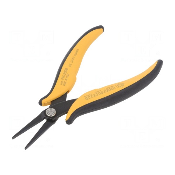 Narzędzie typu szczypce przeznaczone jest do prac związanych z chwytaniem oraz gięciem elementów. Produkt wyposażony został w wydłużone, płaskie szczęki, których powierzchnie chwytające są gładkie, co minimalizuje ryzyko uszkodzenia trzymanego przedmiotu.