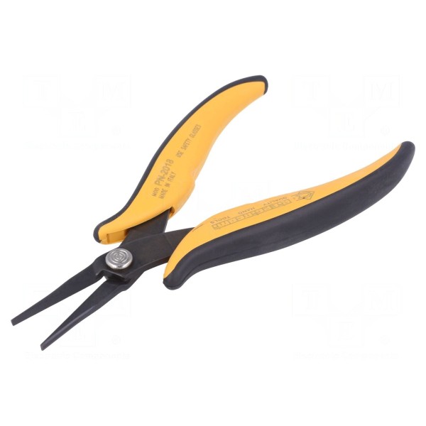 Szczypce PN 2018 przeznaczone są do prac związanych z chwytaniem oraz gięciem elementów. Narzędzie wyposażone jest w wydłużone, płaskie szczęki z gładkimi powierzchniami chwytającymi, co umożliwia stabilną pracę bez ryzyka uszkodzenia powierzchni trzymanego materiału.