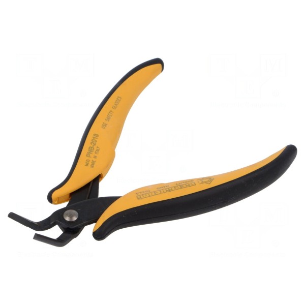 Szczypce PIERGIACOMI PNB 2018 to narzędzie przeznaczone do precyzyjnego chwytania oraz gięcia elementów. Konstrukcja charakteryzuje się odgiętym profilem oraz gładkimi powierzchniami chwytającymi, co pozwala na stabilną pracę bez ryzyka zarysowania obrabianego materiału.
