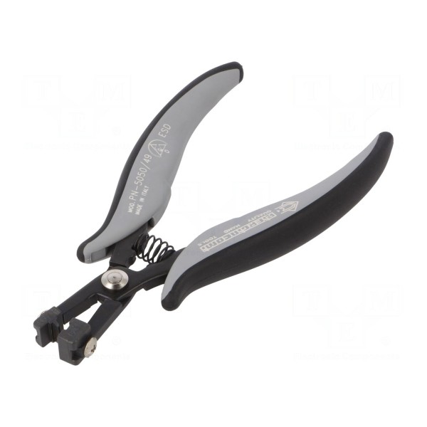 Konstrukcja narzędzia w wersji ESD pozwala na bezpieczne użytkowanie w strefach chronionych przed wyładowaniami elektrostatycznymi. Całkowita długość szczypiec wynosi 158mm, co ułatwia manipulację elementami na płytkach drukowanych oraz w innych aplikacjach elektronicznych.