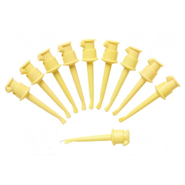 Konstrukcja urządzenia posiada gniazdo o rozmiarze 2,29mm oraz szczęki z rozwarciem 3,05mm. Całkowita długość chwytaka wynosi 59,69mm, a obudowa wykonana jest w kolorze żółtym. W opakowaniu znajduje się 10 sztuk produktu.