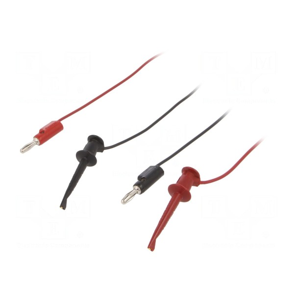 Przewód pomiarowy o długości 0,6096 m przeznaczony jest do wykonywania połączeń w układach elektronicznych. Zestaw składa się z dwóch elementów wyposażonych w chwytak haczykowy oraz wtyk bananowy o średnicy 4 mm. Konstrukcja końcówek umożliwia sztaplowanie, co ułatwia prowadzenie wielopunktowych pomiarów.