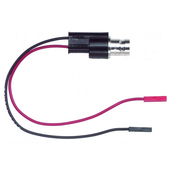 Przewód pomiarowy wyposażony w złącze BNC (gniazdo) oraz dwa gniazda o średnicy 0,64 mm. Całkowita długość elementu wynosi 0,14 m.