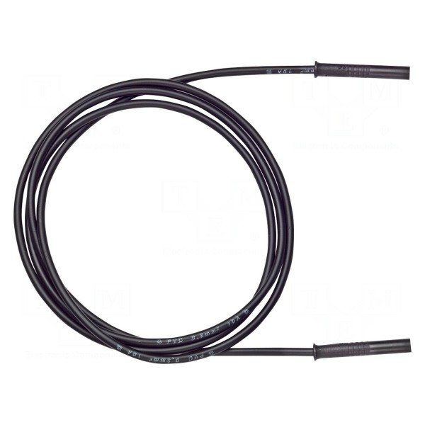 Przewód pomiarowy o długości 1 metra jest wyposażony w izolowane wtyki bananowe o średnicy 2 mm znajdujące się po obu stronach. Konstrukcja bazuje na mosiężnych stykach z niklowaną powłoką, co zapewnia parametry przewodzenia dla prądu o natężeniu do 10 A.