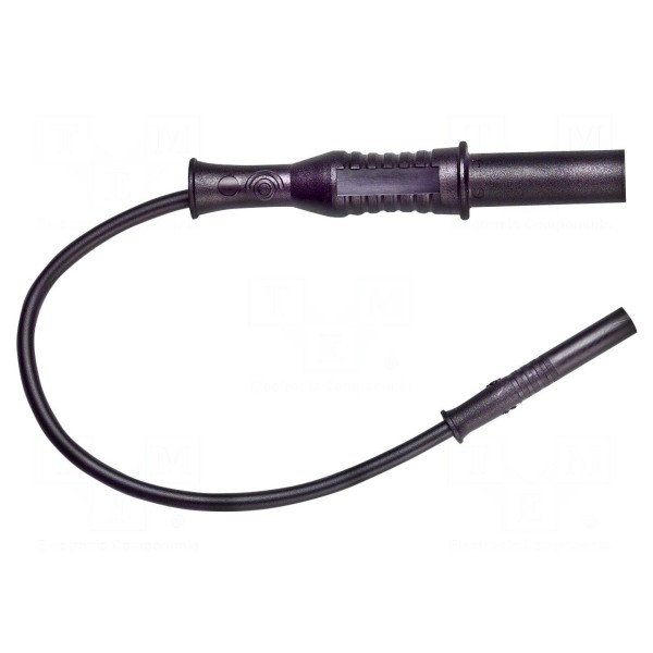 Przewód pomiarowy o długości 0,1 metra charakteryzuje się napięciem znamionowym wynoszącym 70V DC oraz 33V AC przy maksymalnym prądzie pracy 2A. Konstrukcja elementu obejmuje wtyk bananowy 2mm oraz wtyk bananowy 4mm, co umożliwia integrację z różnorodnymi gniazdami pomiarowymi. Złącza posiadają izolację oraz zostały wykonane z miedzi berylowej z niklowaną powierzchnią styków, co zapewnia trwałe połączenie.