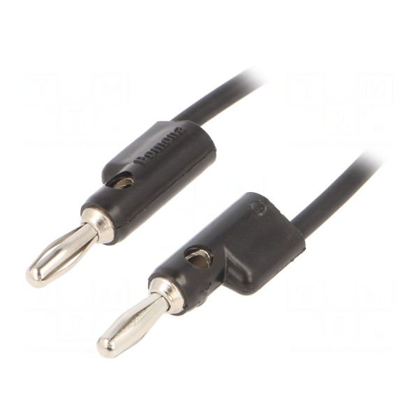 Przewód pomiarowy o długości 1,219m przeznaczony jest do wykonywania połączeń w układach elektronicznych. Element charakteryzuje się prądem znamionowym wynoszącym 15A oraz napięciem znamionowym 30V AC i 60V DC. Konstrukcja zapewnia stabilne połączenie dzięki zastosowaniu wtyków bananowych z gniazdem osiowym i poprzecznym 4mm, umieszczonych po obu stronach przewodu.