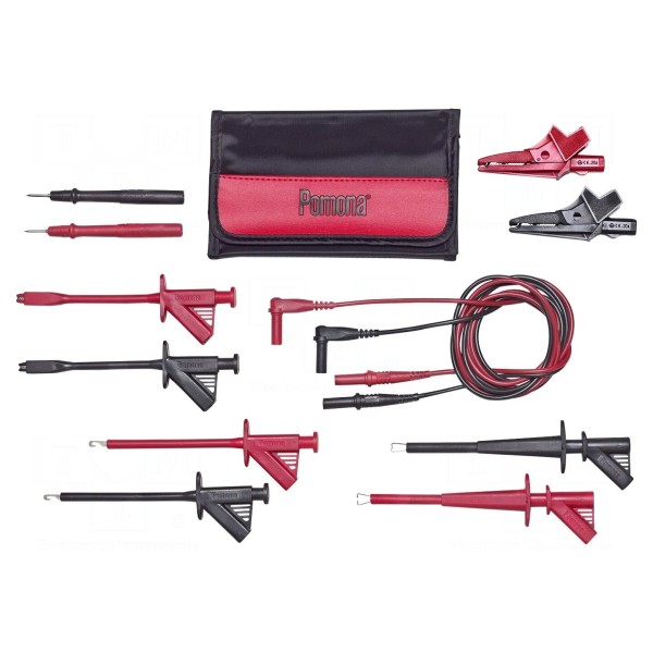 Zestaw składa się z dwóch przewodów pomiarowych w kolorze czarnym oraz czerwonym. Komplet pozwala na realizację szerokiego zakresu połączeń podczas prac serwisowych i pomiarowych.