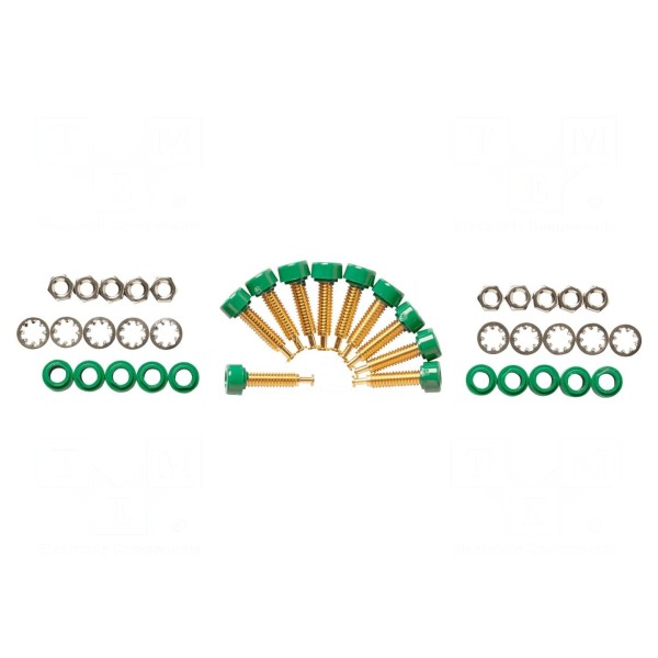 Parametry elektryczne komponentu obejmują prąd znamionowy wynoszący 5A oraz napięcie znamionowe 1,5kV. Złącze przystosowane jest do pracy w temperaturze otoczenia do 115°C. Produkt dostępny jest w kolorze zielonym.