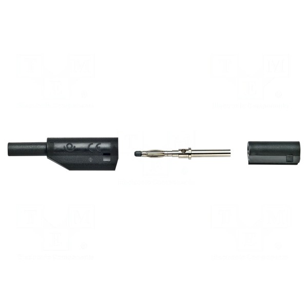 Styk wykonany został z miedzi berylowej i poddany niklowaniu. Całkowita długość elementu wynosi 35,5mm, a jego kolor to czarny. Komponent jest zgodny z normami CAT II 600V oraz EN 61010.