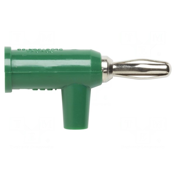 Złącze bananowe 4mm, wtyk, 15A, 60V DC, zielony
