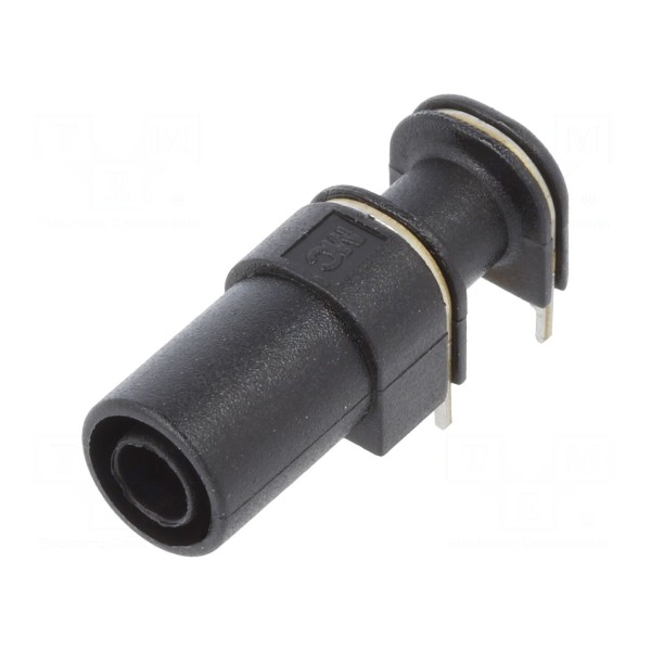 Gniazdo bananowe 4mm przeznaczone do montażu na płytkach drukowanych PCB. Element wykonano w wersji kątowej oraz w pełni izolowanej, co zwiększa bezpieczeństwo użytkowania w układach elektronicznych. Złącze charakteryzuje się prądem znamionowym wynoszącym 24A oraz posiada wyprowadzenia przystosowane do lutowania bezpośredniego.