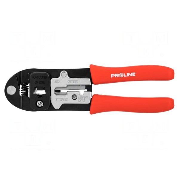 Narzędzie przeznaczone jest do zaciskania złączy typu RJ11, RJ12 oraz RJ45. Konstrukcja urządzenia umożliwia realizację prac związanych z przygotowaniem przewodów teleinformatycznych.