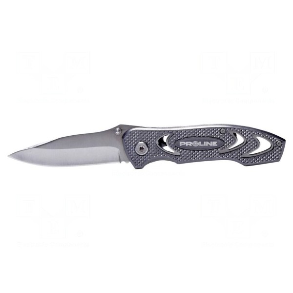 Nóż typu uniwersalnego wyposażony w ostrze o długości 80mm. Konstrukcja wykonana ze stali nierdzewnej, co wpływa na parametry użytkowe narzędzia.