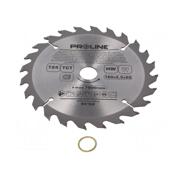 Piła tarczowa PROLINE 84162 przeznaczona jest do cięcia drewna. Tarcza o średnicy 160 mm posiada 24 zęby wykonane z węglika spiekanego, co wpływa na charakterystykę pracy narzędzia. Konstrukcja tarczy jest hartowana, co zwiększa jej trwałość podczas eksploatacji.