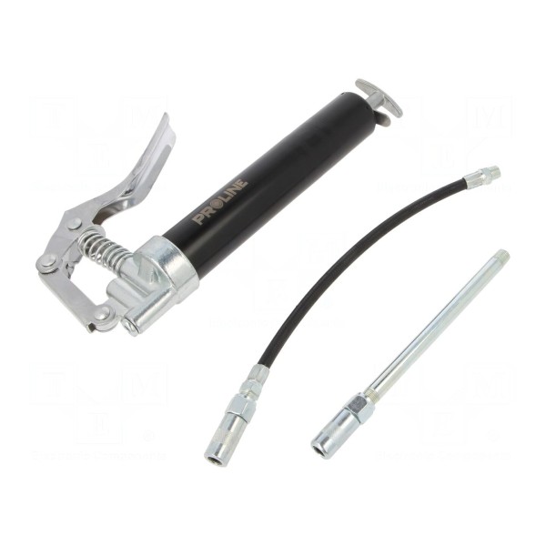 Smarownica ręczna PROLINE 42501 została zaprojektowana do punktowej aplikacji środków smarnych. Urządzenie charakteryzuje się pojemnością zbiornika wynoszącą 120ml. Konstrukcja narzędzia umożliwia ręczne dozowanie smaru, co pozwala na kontrolowany przebieg pracy. Model ten znajduje zastosowanie w bieżącej konserwacji maszyn i urządzeń wymagających okresowego smarowania elementów mechanicznych.