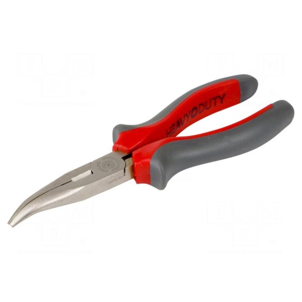 Szczypce o konstrukcji odgiętej i półokrągłym kształcie szczęk charakteryzują się długością całkowitą wynoszącą 160mm. Narzędzie zostało zaprojektowane do prac wymagających precyzyjnego chwytania oraz operowania w miejscach o utrudnionym dostępie.