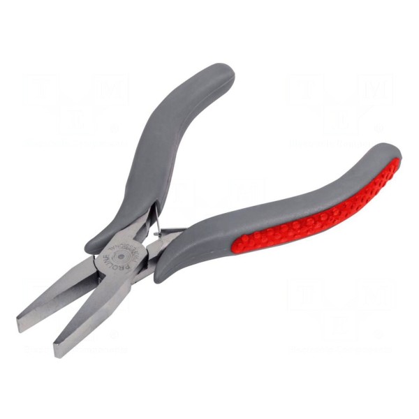 Szczypce płaskie o długości całkowitej 120mm przeznaczone są do prac montażowych w elektronice. Konstrukcja narzędzia pozwala na precyzyjne chwytanie oraz manipulowanie niewielkimi elementami w miejscach o ograniczonej przestrzeni roboczej.