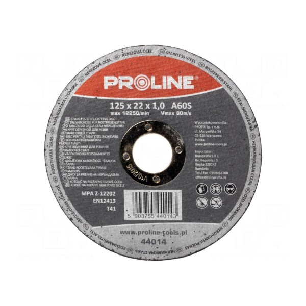 Tarcza tnąca 125mm, grubość 1mm, do stali i stali kwasoodpornej