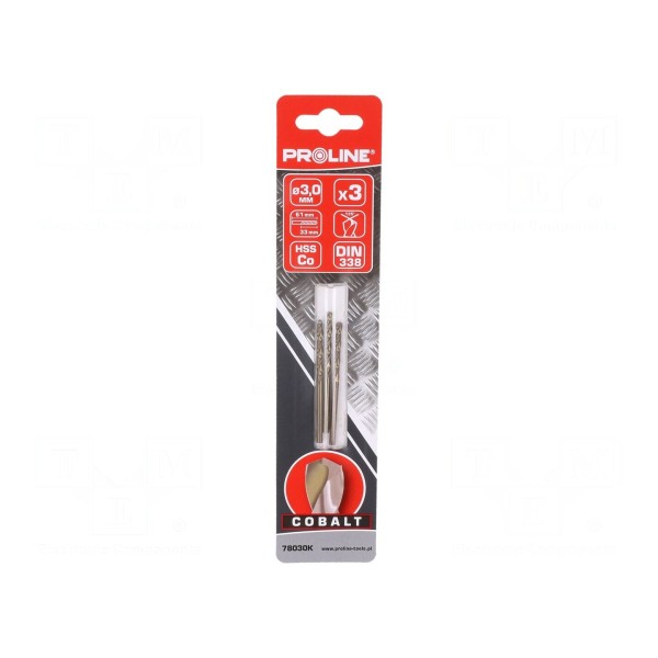 Wiertło do metalu HSS-Co 3mm, 3 sztuki w opakowaniu