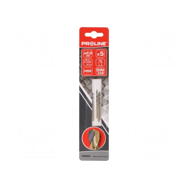 Wiertło do metalu HSS, średnica 2mm, zestaw 5 sztuk