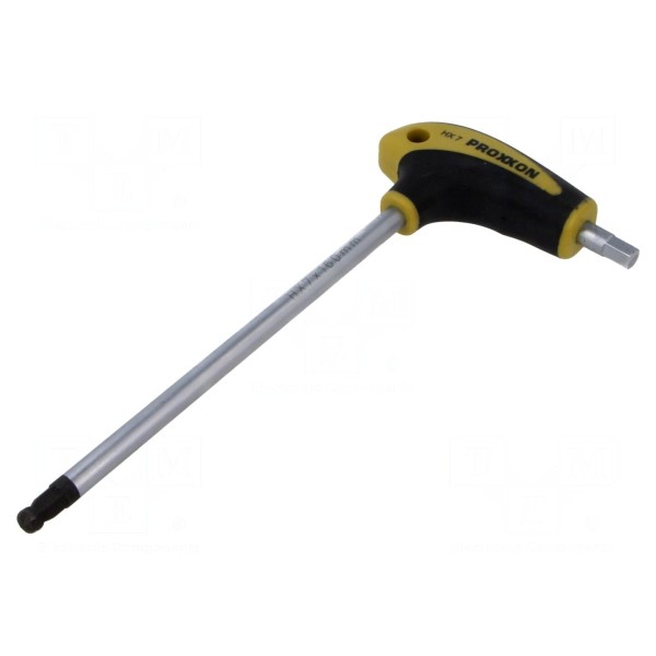 Klucz imbusowy PROXXON o rozmiarze grota HEX 7mm. Konstrukcja narzędzia oparta jest na rękojeści typu L, co umożliwia pracę w miejscach o ograniczonej przestrzeni.
