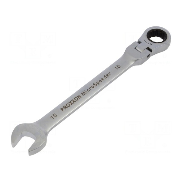 Klucz płasko-oczkowy z grzechotką i przegubem, rozmiar 15mm