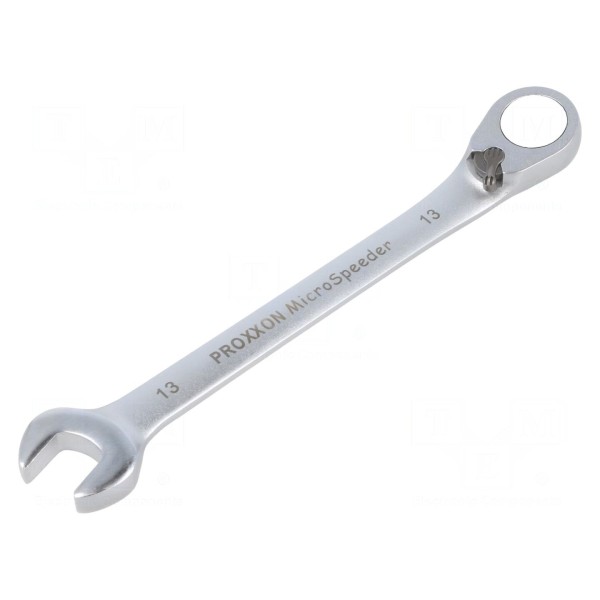 Mechanizm grzechotki pozwala na szybkie odkręcanie i dokręcanie śrub oraz nakrętek bez konieczności każdorazowego zdejmowania klucza z elementu złącznego. Narzędzie zostało zaprojektowane do pracy z rozmiarem 13 mm.