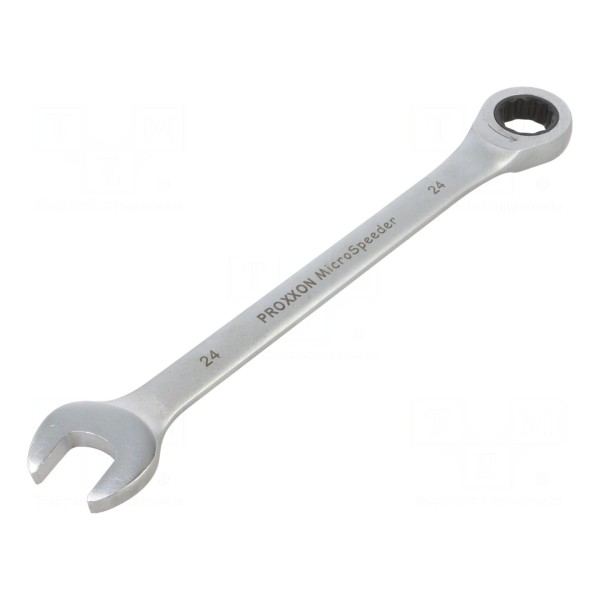 Klucz płasko-oczkowy z mechanizmem grzechotkowym jest przeznaczony do prac montażowych wymagających precyzyjnego dokręcania lub odkręcania elementów złącznych. Narzędzie wyposażone jest w końcówkę o rozmiarze 24mm.