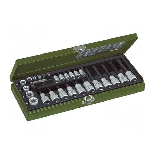 Klucz zestaw nasadkowy Torx 29szt. 1/2", 1/4"