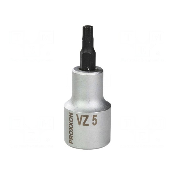 Nasadka PROXXON 23318 to element narzędziowy typu nasadowego o konstrukcji 12-kątnej. Produkt posiada gniazdo uchwytu w rozmiarze 1/2" oraz grot o wielkości VZ5.