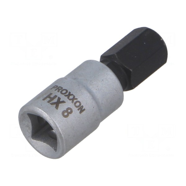Nasadka PROXXON to narzędzie typu imbusowego o rozmiarze HEX 8 mm, przeznaczone do prac montażowych. Element posiada gniazdo uchwytu w rozmiarze 1/4" oraz całkowitą długość 33 mm.