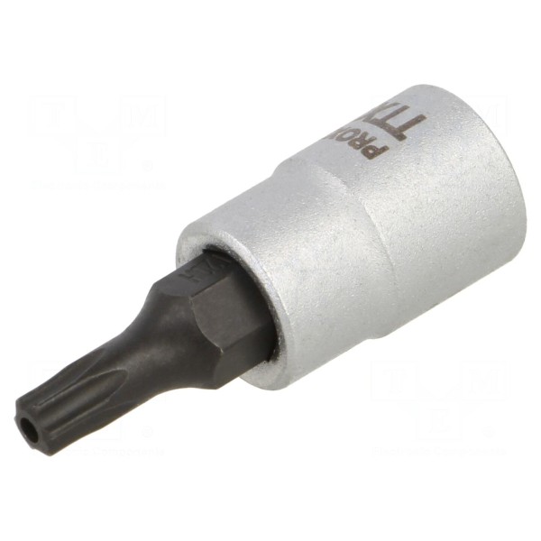 Nasadka PROXXON o rozmiarze T6H została zaprojektowana do współpracy z kluczami o gnieździe uchwytu 1/4". Element posiada profil Torx® z zabezpieczeniem, co umożliwia obsługę śrub typu tamper-proof.
