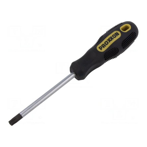 Wkrętak standardowy PROXXON wyposażony w grot typu Torx® z zabezpieczeniem o rozmiarze T40H. Narzędzie przeznaczone jest do prac z wkrętami wyposażonymi w otwór centrujący w gnieździe typu Torx.