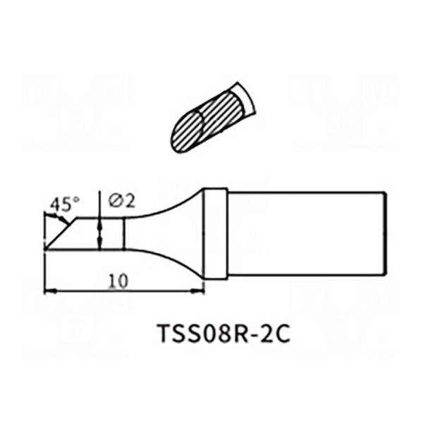 Grot przeznaczony jest do użytku z lutownicami grzałkowymi. Element charakteryzuje się kształtem typu kopytko o wymiarze 2mm.