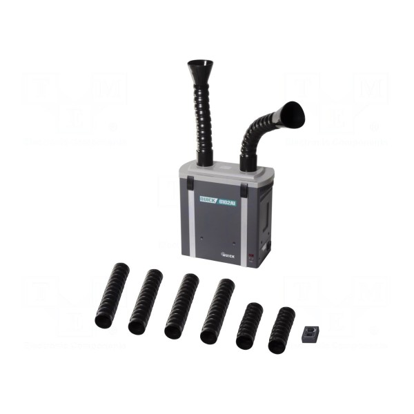 Pochłaniacz oparów QUICK 6102/A1 to dwukanałowe urządzenie przeznaczone do oczyszczania powietrza na dwóch stanowiskach pracy. System osiąga wydajność przepływu powietrza na poziomie 200m³/h przy poborze mocy 0,25kW. Urządzenie zasilane jest napięciem 230V AC i dostosowane do standardów europejskich.