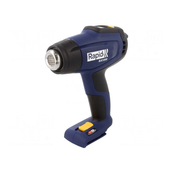 Opalarka elektryczna RAPID RX1000 przeznaczona jest do pracy z temperaturą strumienia powietrza w zakresie od 400°C do 550°C. Urządzenie zasilane jest napięciem 18V DC.