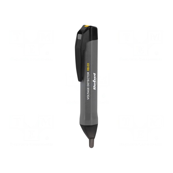 Wskaźnik napięcia Rebel RB-03 to bezprzewodowy detektor przeznaczony do wykrywania napięcia przemiennego w zakresie od 50V do 1000V AC. Urządzenie pozwala na identyfikację obecności potencjału elektrycznego bez konieczności bezpośredniego kontaktu z przewodnikiem.