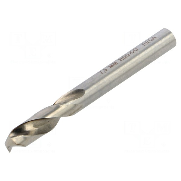 Wiertło do metalu 7,5mm, stal HSS-Co, DIN 1897