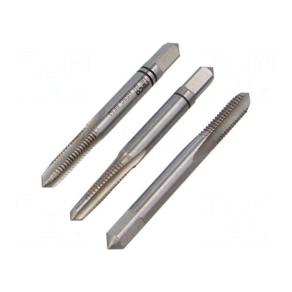 W skład zestawu wchodzą trzy gwintowniki w wersjach: wstępnej, pośredniej oraz wykańczającej. Każdy z elementów charakteryzuje się długością 50 mm oraz uchwytem kwadratowym o rozmiarze 4,9 mm przystosowanym do pracy ręcznej. W zestawie: gwintowniki.
