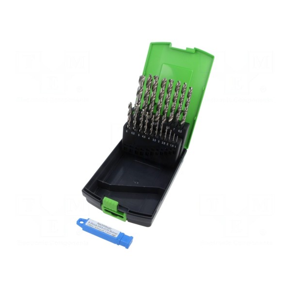 Zestaw wierteł do metalu wykonanych ze stali szybkotnącej kobaltowej HSS-Co. Komplet obejmuje 29 elementów o średnicach w zakresie od 1 mm do 10 mm.