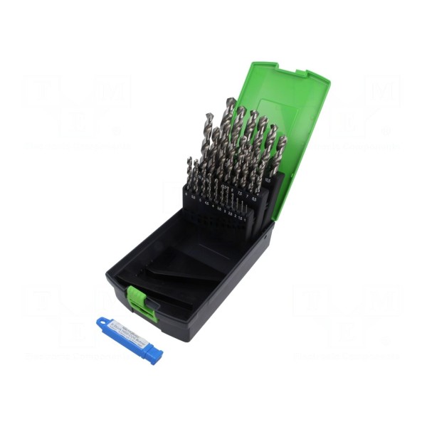 Zestaw zawiera 35 wierteł do metalu wykonanych ze stali szybkotnącej kobaltowej HSS-Co. Elementy te charakteryzują się zakresem średnic od 1 mm do 13 mm, co umożliwia wykonywanie otworów o różnych wymiarach w materiałach metalowych.