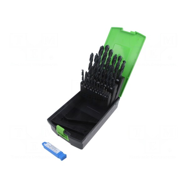 Całość kompletu dostarczana jest w kasecie z tworzywa sztucznego, która ułatwia przechowywanie oraz selekcję narzędzi. W zestawie: wiertła.