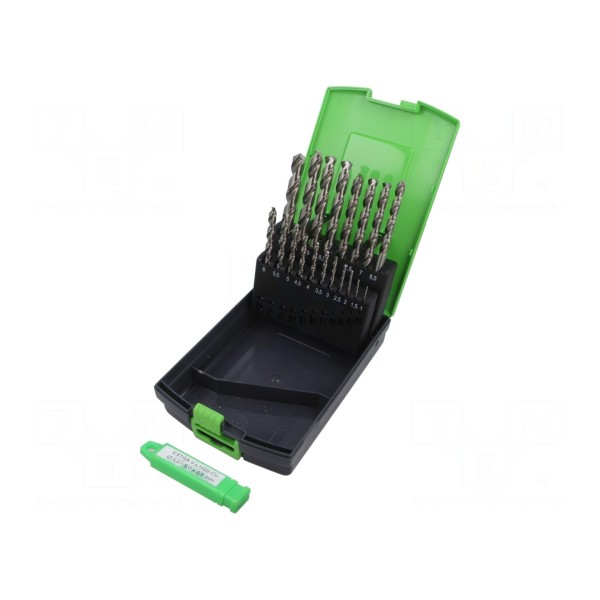 Zestaw zawiera 28 wierteł do metalu wykonanych ze stali szybkotnącej kobaltowej HSS-Co. Narzędzia charakteryzują się szlifowanym ostrzem oraz odpornością na działanie wysokich temperatur podczas pracy.