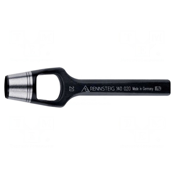 Przebijak RENNSTEIG służy do otworowania w różnych materiałach. Element charakteryzuje się średnicą trzpienia wynoszącą 20mm oraz całkowitą długością 140mm.