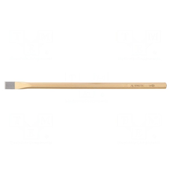 Przecinak płaski o szerokości końcówki 12mm charakteryzuje się całkowitą długością wynoszącą 200mm. Narzędzie zostało wykończone poprzez pokrycie powierzchni warstwą lakieru.