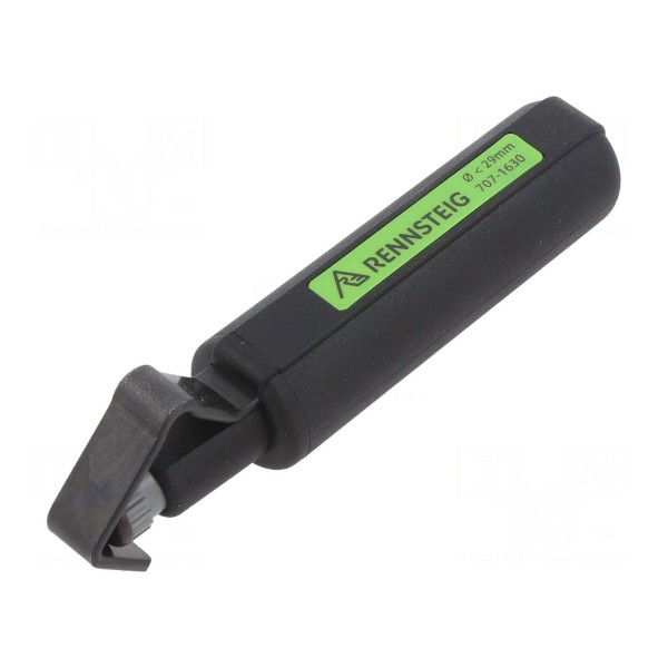 Ściągacz izolacji RENNSTEIG 707-1630 to narzędzie przeznaczone do pracy z przewodami o przekroju okrągłym. Urządzenie umożliwia obróbkę kabli o średnicy zewnętrznej w zakresie od 6 mm do 29 mm.