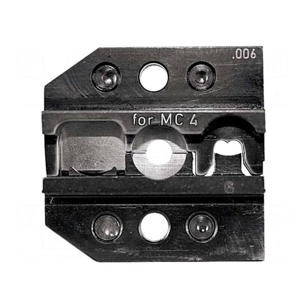 Szczęki do zaciskania stanowią element wymienny przeznaczony do pracy ze złączami solarnymi typu MC4. Komponent ten znajduje zastosowanie w instalacjach fotowoltaicznych, umożliwiając przygotowanie połączeń przewodów. Element został zaprojektowany do montażu w dedykowanych zaciskarkach. Konstrukcja pozwala na prawidłowe uformowanie połączenia na stykach elektrycznych stosowanych w systemach solarnych.